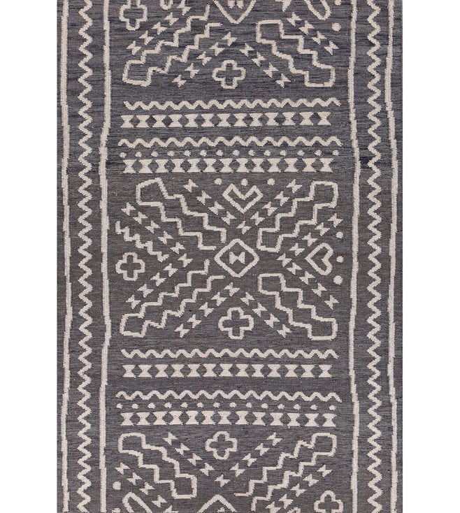 Jaipur RugsCarpet For Living room 5x8 Feet Grey Black Wool Viscose Rectangle Moroccan Tribal Rug