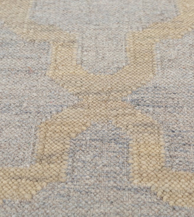 A symphony of understated elegance, this Jaipur rug in soft grey wool weaves a timeless story in your living room or bedroom. Its rectangular silhouette, measuring 5x8 feet, anchors the space with a subtle sophistication. The flat weave construction adds a touch of texture, while the muted grey hue complements any color palette. Weighing in at 4.4 kgs, this rug feels substantial underfoot, offering a comforting warmth and a touch of luxury.