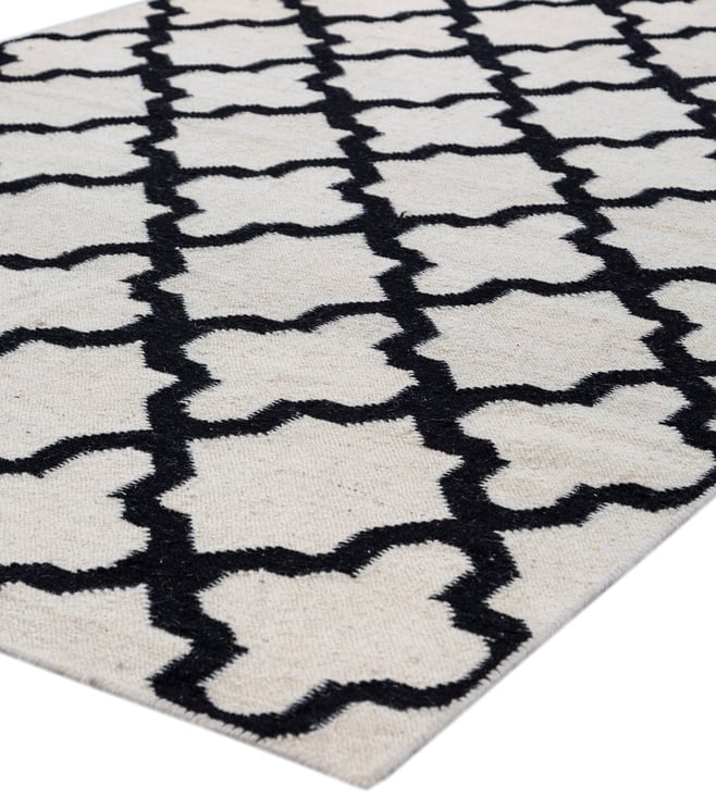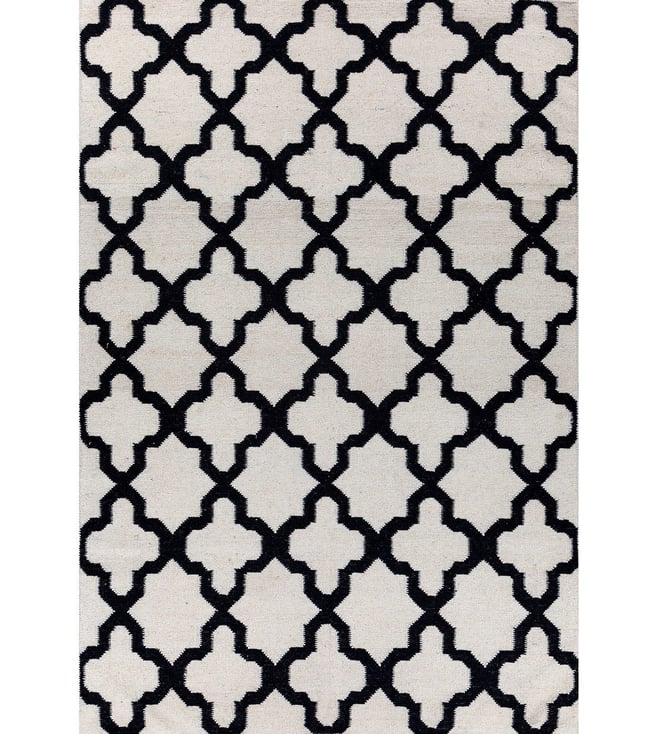 Jaipur RugsCarpet For Living room 5x8 Feet Ivory Wool Rectangle Geometric Stripes Rug