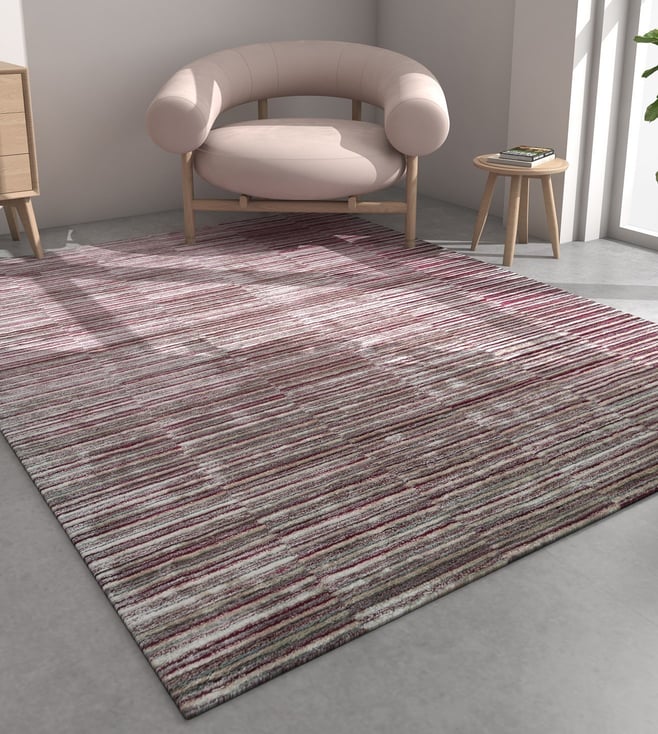 Jaipur RugsCarpet For Living room 5x8 Feet Pink Purple Wool Viscose Rectangle Geometric Stripes Rug