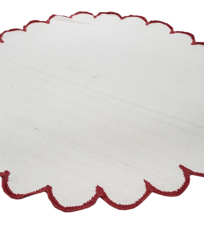 A symphony of ivory wool, this Jaipur rug whispers elegance into your living room or bedroom. Its irregular flat weave, a testament to skilled artisans, creates a captivating texture that invites barefoot strolls. The 6x6 feet expanse anchors the space with a sense of calm, while the subtle variations in the weave add depth and intrigue. Weighing in at 3.96 kgs, this rug is a substantial statement piece, yet its soft, natural fibers offer a comforting touch underfoot. Let its timeless beauty elevate your home to a haven of refined comfort.