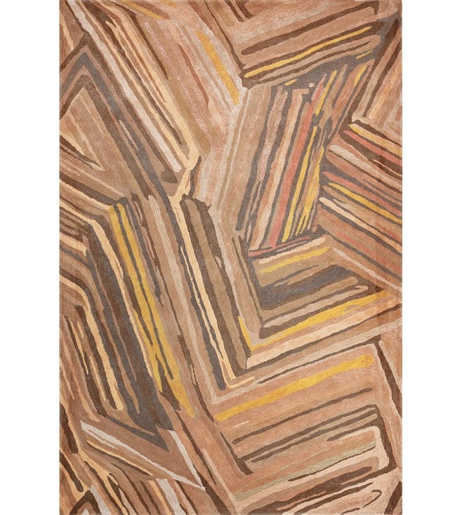 Jaipur RugsCarpet For Living room 6x9 Feet Beige Brown Wool Viscose Rectangle Abstract Rug