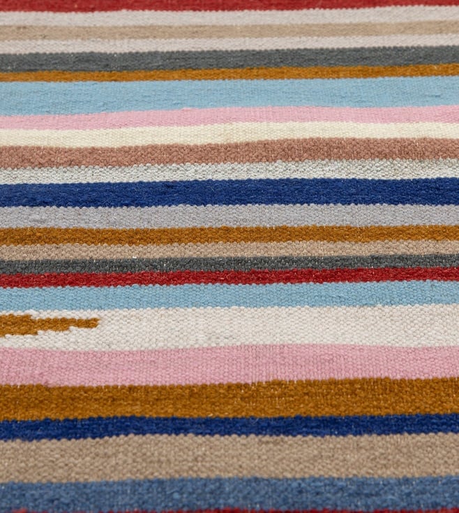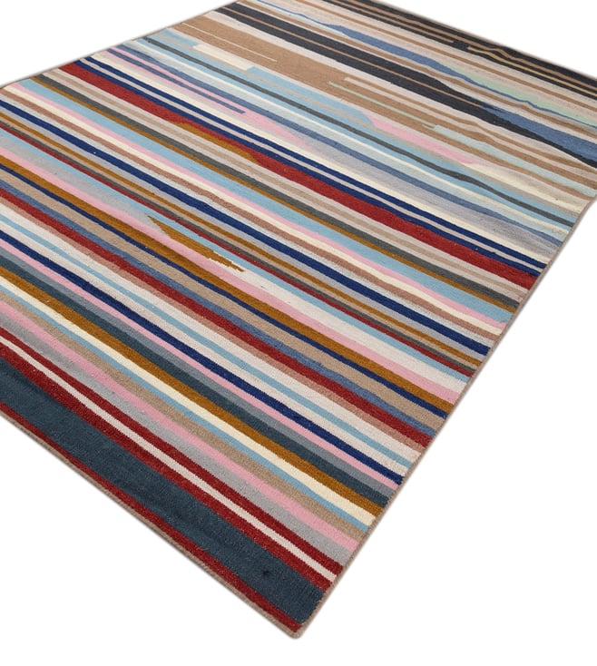 Embrace the vibrant spirit of Jaipur with this stunning handwoven rug. Crafted from a blend of luxurious wool and durable polyester, it boasts a captivating flat weave design that adds a touch of bohemian elegance to your living room or bedroom. Its generous 6x9 feet dimensions provide ample coverage, while the rich hues and intricate patterns create a focal point that draws the eye. The rug's weight of 5.94 kgs ensures a substantial feel and lasting quality.
