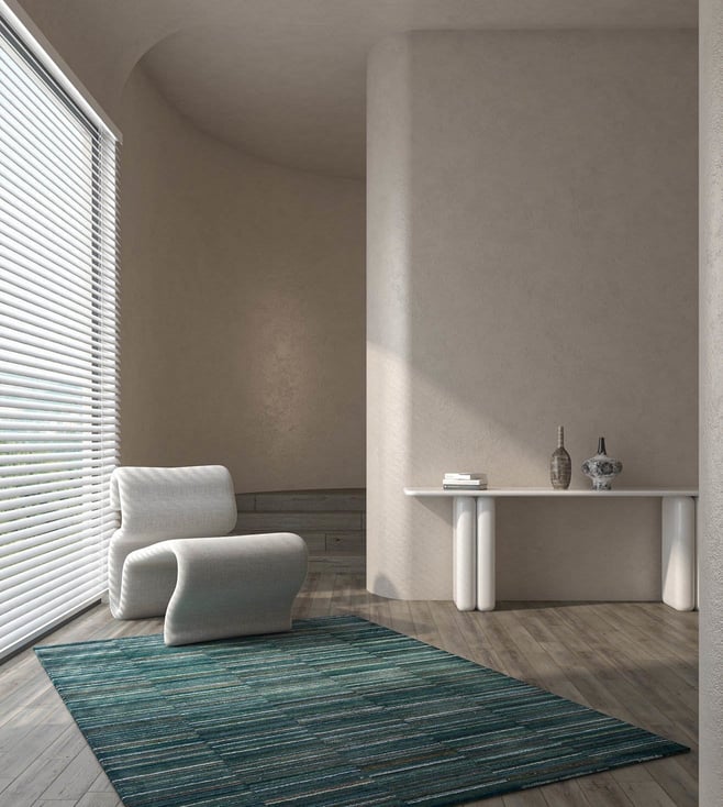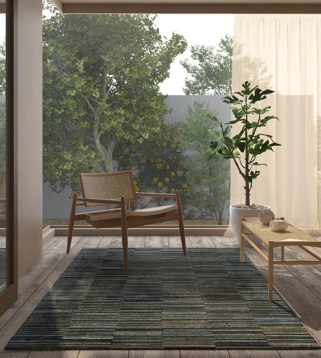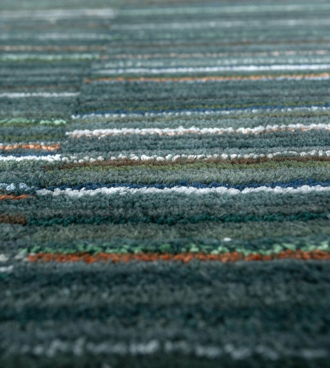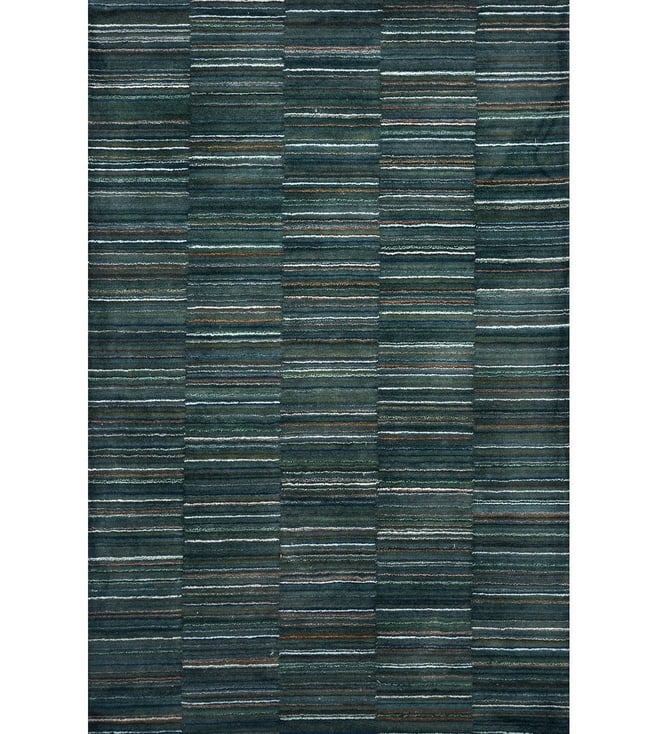 Jaipur RugsCarpet For Living room 6x9 Feet Blue Wool Viscose Rectangle Geometric Stripes Rug