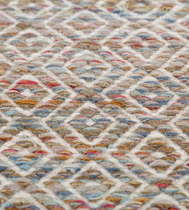 Embrace the timeless elegance of Jaipur Rugs' Living Room Bedroom Multi Wool & Viscose Rectangle Flat Weave. This 6x9 ft masterpiece, crafted with meticulous attention to detail, seamlessly blends the warmth of wool with the luxurious sheen of viscose. Its intricate patterns, woven with precision, add a touch of sophistication to any space. Weighing 5.94 kgs, this rug offers durability and comfort underfoot. Whether adorning your living room or bedroom, this rug will elevate your decor with its captivating beauty and enduring quality.