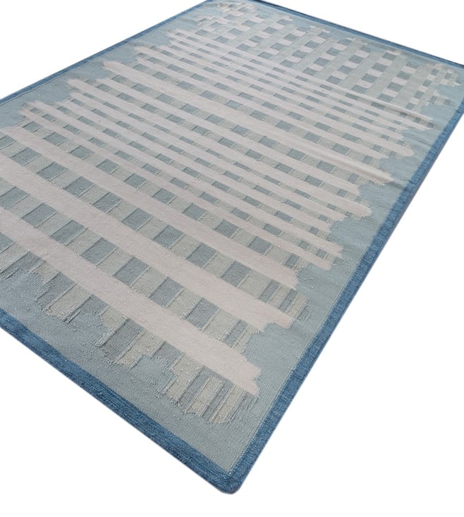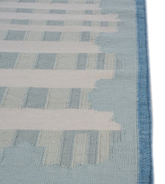 Embrace the timeless elegance of Jaipur's handwoven blue wool rug. This 6x9 ft rectangle flat weave, crafted with meticulous detail, infuses your living room or bedroom with a touch of sophistication. The rich blue hue, reminiscent of a tranquil sky, creates a calming ambiance, while the intricate weave adds depth and texture. Weighing 5.94 kgs, this rug is a statement piece that speaks volumes about your refined taste. Its durability ensures years of enjoyment, making it a cherished heirloom for generations to come.