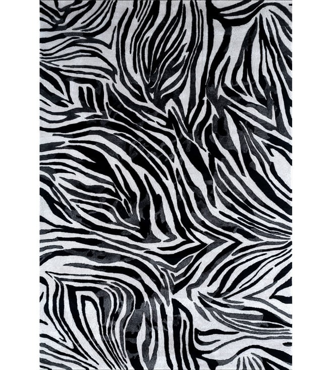 Jaipur RugsCarpet For Living room 6x9 Feet Grey Black Wool Viscose Rectangle Abstract Rug