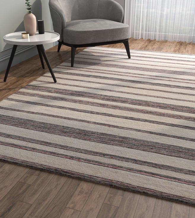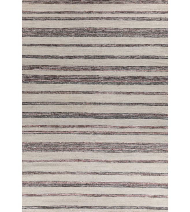Jaipur RugsCarpet For Living room 6x9 Feet Grey Black Wool Viscose Rectangle Geometric Stripes Rug