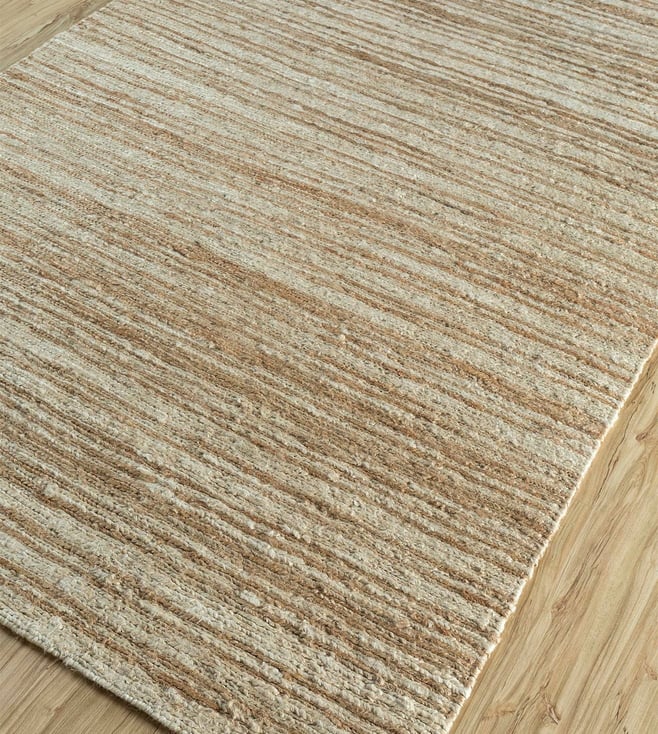 Jaipur RugsCarpet For Living room 6x9 Feet Ivory Jute Rectangle Geometric Stripes Rug