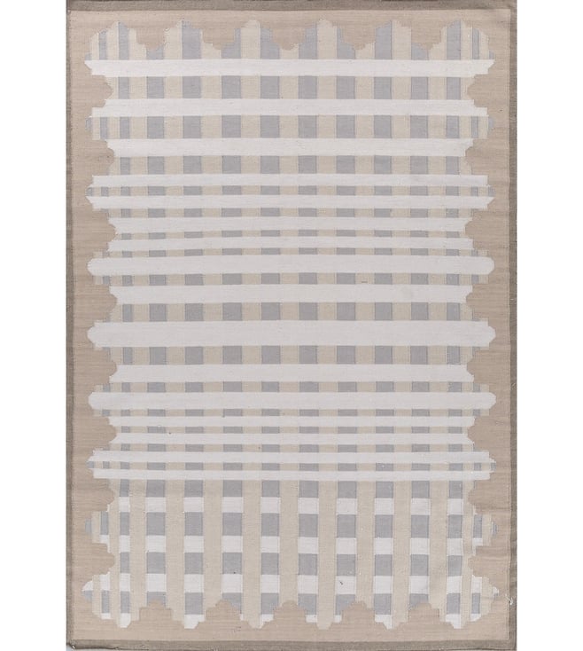 Jaipur RugsCarpet For Living room 6x9 Feet Ivory Wool Rectangle Geometric Stripes Rug