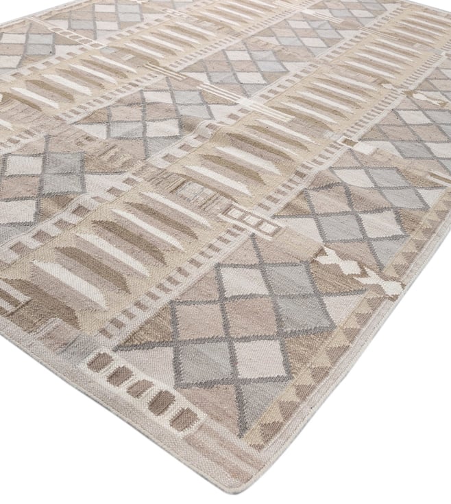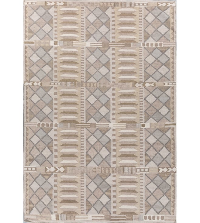 Jaipur RugsCarpet For Living room 6x9 Feet Ivory Wool Rectangle Geometric Stripes Rug
