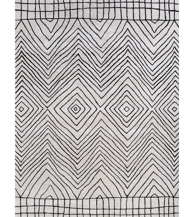 Jaipur RugsCarpet For Living room 6x9 Feet Ivory Wool Viscose Rectangle Geometric Stripes Rug