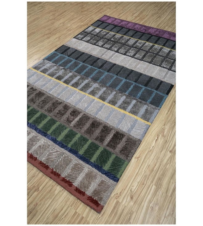 This carpet is inspired by the contemporary flair of the beautiful environment. It is hand tufted to make artwork for your floors. Bring home this carpet that fits your space perfectly. It has been crafted with care using wool and viscose. Disclaimer: Product colour may slightly vary due to photographic lighting sources. Country of Origin - India.