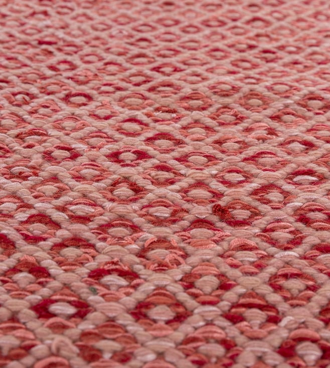 Embrace the allure of Jaipur's vibrant heritage with this exquisite handwoven rug. Crafted from a luxurious blend of wool and viscose, its delicate pink hues dance across the intricate flatweave design, adding a touch of sophistication to your living room or bedroom. Measuring 6x9 feet, it provides ample coverage while its lightweight construction (5.94 kgs) ensures easy placement and movement. This rug is more than just a floor covering it's a statement piece that whispers tales of ancient craftsmanship and timeless elegance.