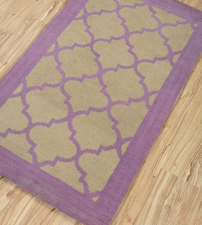 Embrace the regal allure of Jaipur Rugs' Purple Polyester & Rayon Chenille Rectangle Flat Weave. This luxurious rug, measuring 7'4x6 feet, infuses your living room or bedroom with a touch of sophistication. Crafted from a blend of polyester and rayon chenille, it boasts a soft, plush texture that feels divine underfoot. The rich purple hue adds a touch of drama and elegance, while the flat weave construction ensures durability and easy maintenance. Weighing in at 19.1 kgs, this rug is a statement piece that will elevate your space with its timeless beauty and undeniable charm.