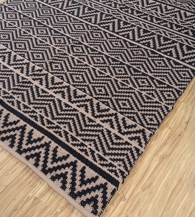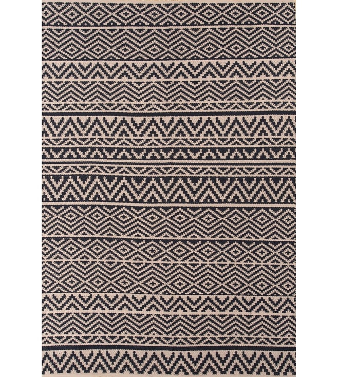 Jaipur RugsCarpet For Living room 7x10 Feet Grey Black Wool Cotton Rectangle Geometric Stripes Rug