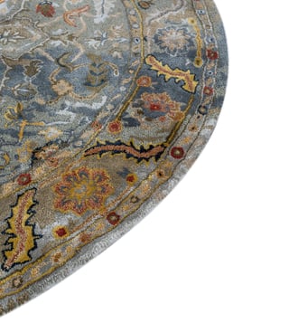 Jaipur RugsCarpet For Living room 8 round Feet Grey Black Wool Viscose Round Vintage Distressed Rug