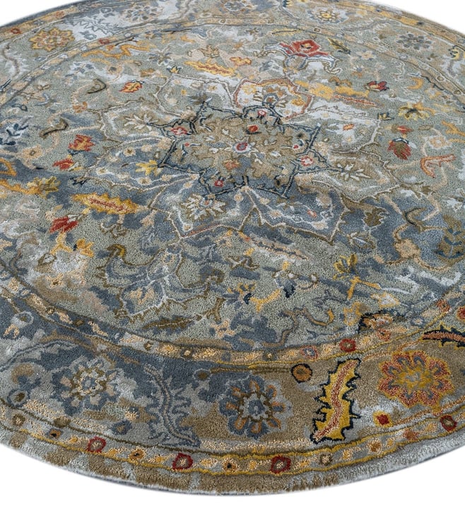 Embrace the artistry of Jaipur Rugs with this exquisite round rug, a masterpiece woven from luxurious wool and viscose. Its 8-foot diameter gracefully anchors your living room or bedroom, adding a touch of sophistication and warmth. The intricate patterns, meticulously crafted by skilled artisans, tell a story of tradition and craftsmanship. The plush texture invites bare feet, while the rich colors create a captivating focal point. Weighing in at 28.16 kgs, this rug is a statement piece that will endure for years to come, adding a touch of timeless elegance to your home.