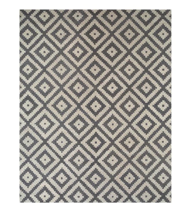 Jaipur RugsCarpet For Living room 8x10 Feet Grey Black Wool Viscose Rectangle Geometric Stripes Rug