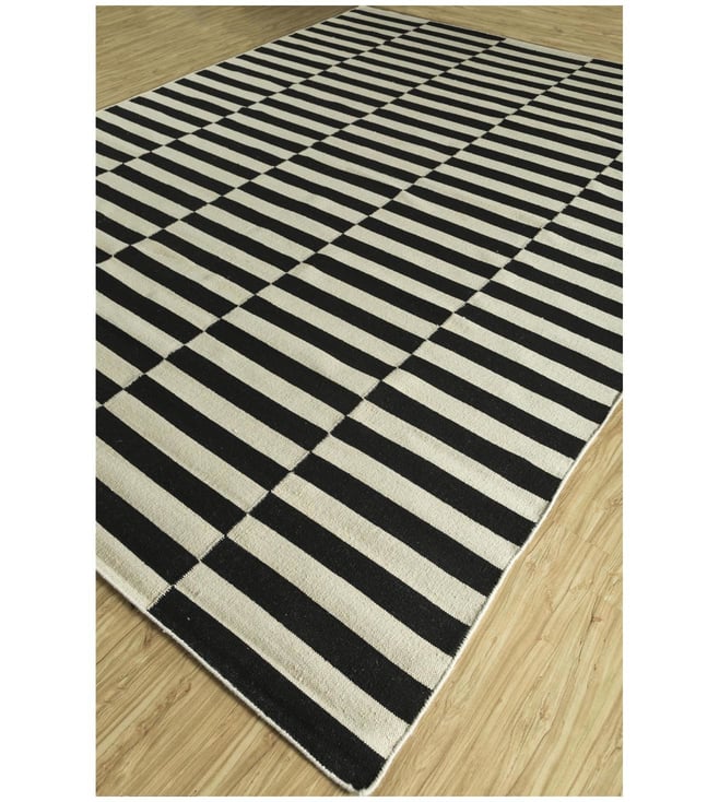 Jaipur RugsCarpet For Living room 9x12 Feet Grey Black Wool Rectangle Geometric Stripes Rug