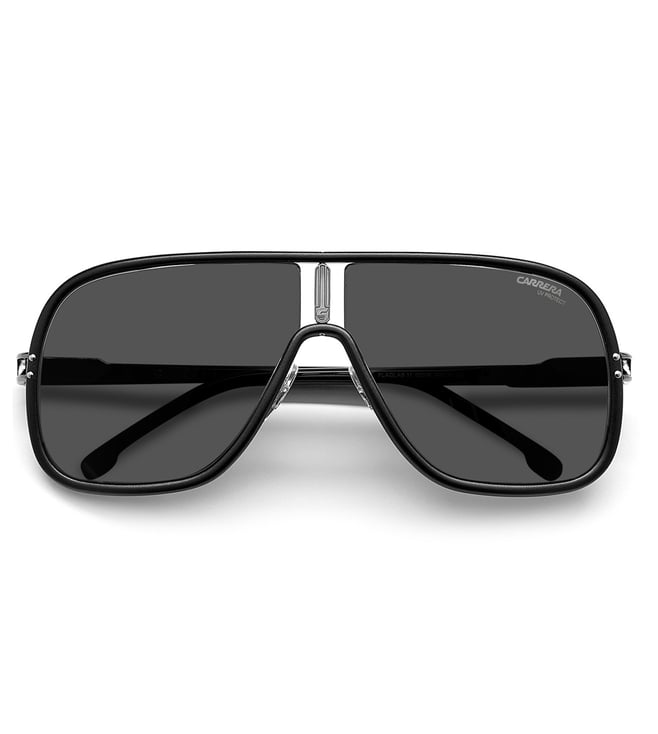 Designed for men and women with a fierce fashion flair these unisex sunglasses are a true expression of Carrera's style codes. The full-rim rectangular frames are crafted from robust yet lightweight aluminum. Notice the bold angular temples and the distinctive nose bridge, proudly emblazoned with the brand's logo lettering for an extra dose of iconic appeal.