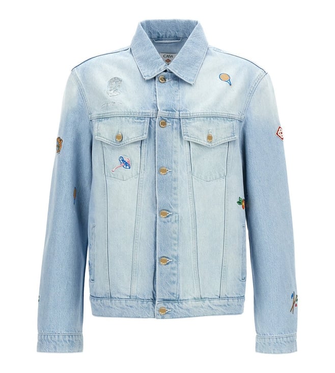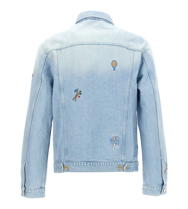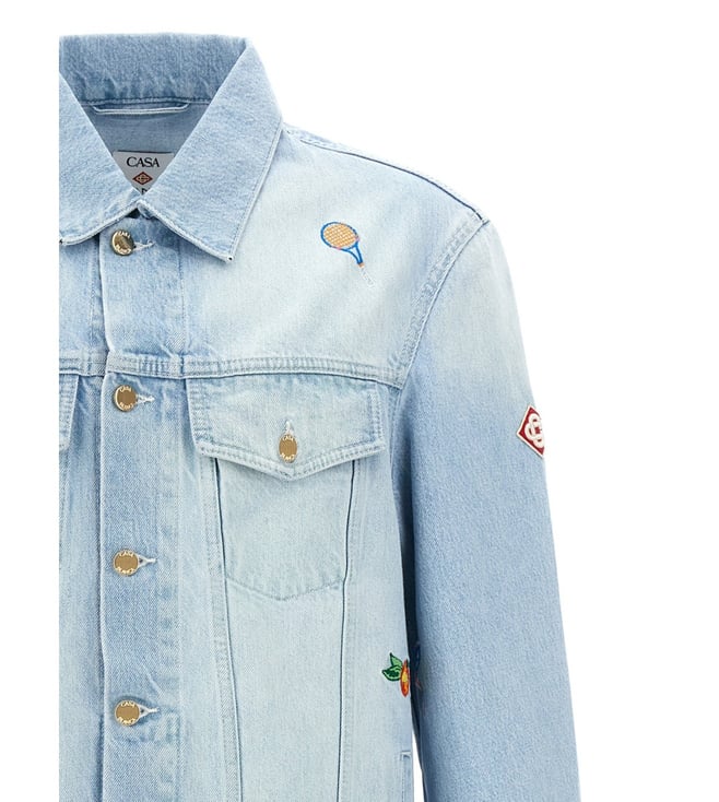 Elevate your style with the Casablanca Light Blue Embroidered Jacket. Embroidered motif' cotton denim jacket with embroidery, button closure, pockets, long cuffed sleeves. True to size fit. Products purchased from Darveys are supported exclusively by the warranty/exchange policies of Darveys and its partner boutiques. Brand owners and their channel partners are not responsible for exchange/warranty services for items purchased through Darveys.