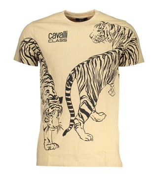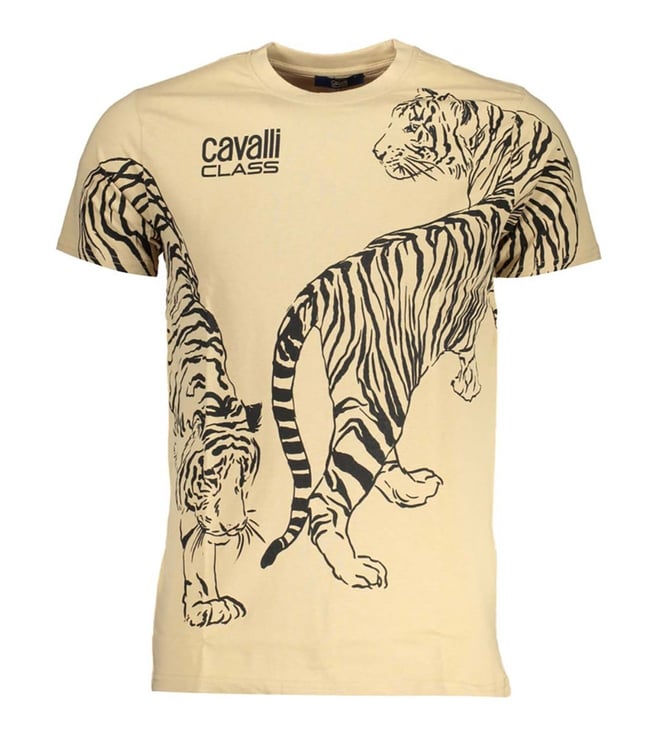 Cavalli Class Beige Cotton Graphic Regular Fit T-Shirt