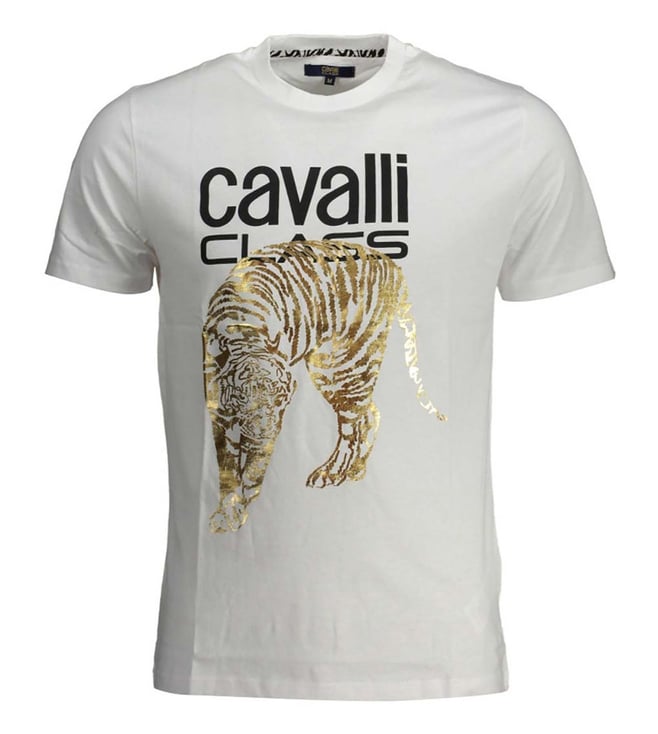 Cavalli Class Bianco Cotton Graphic Regular Fit T-Shirt