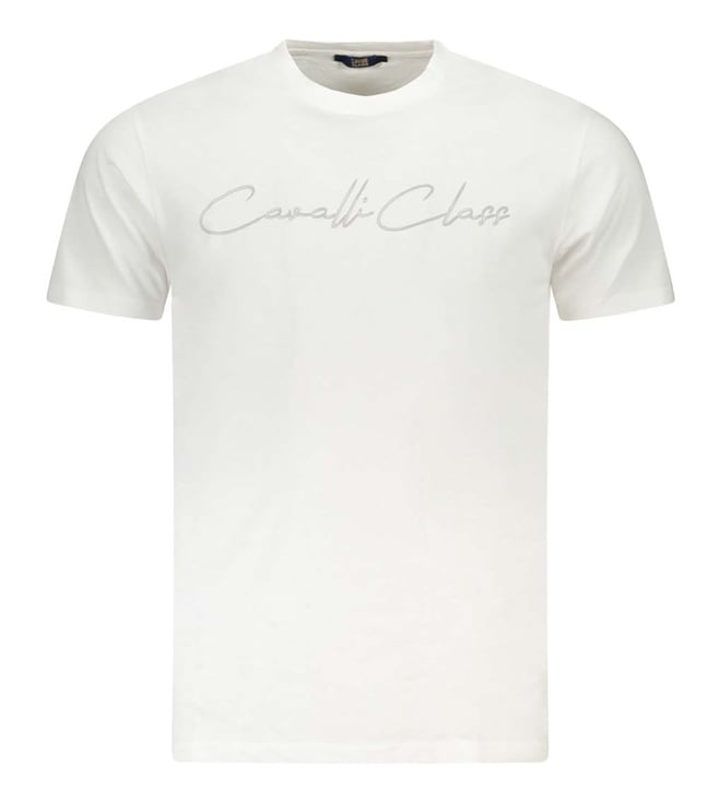 Adorn the modern look with this white crewneck logo t-shirt from Cavalli Class crafted in cotton featuring crewneck, short sleeves, logo detailed, pullover. Products purchased from Darveys are supported exclusively by the warranty/exchange policies of Darveys and its partner boutiques. Brand owners and their channel partners are not responsible for exchange/warranty services for items purchased through Darveys.