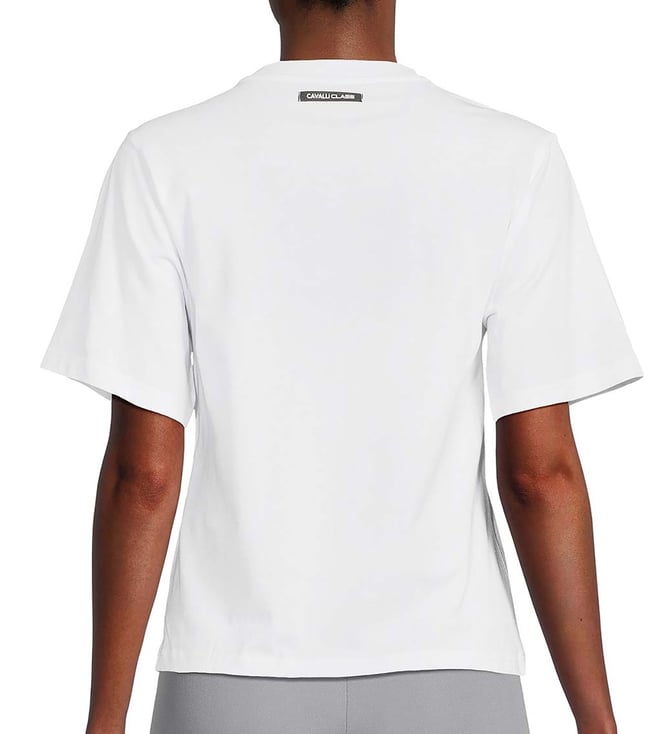 Amp up your wardrobe with this white crewneck logo print t-shirt from Cavalli Class crafted in cotton featuring crewneck, short sleeves, logo print and pullover.