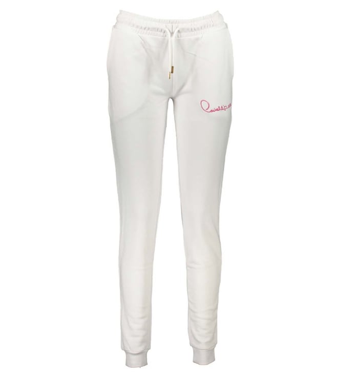 Make an instant impression with this white elastic waist joggers from Cavalli Class crafted in cotton/polyester featuring elastic waist, lace-up, 3 pockets, ankle cuff, embroidery and logo. Products purchased from Darveys are supported exclusively by the warranty/exchange policies of Darveys and its partner boutiques. Brand owners and their channel partners are not responsible for exchange/warranty services for items purchased through Darveys.