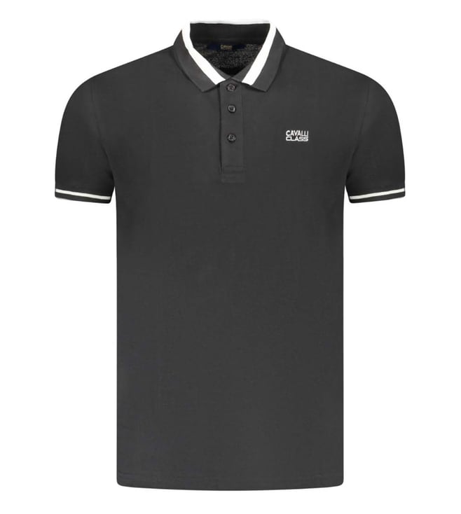 Adorn the modern look with this black printed logo polo from Cavalli Class crafted in cotton featuring polo collar, short sleeves, button closure, logo detailed.