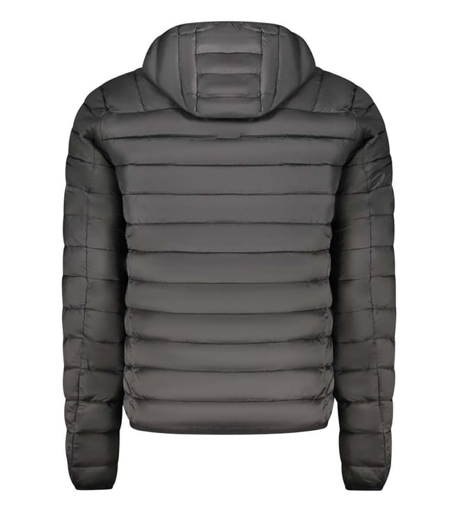 Adorn the modern look with this black logo hooded puffer jacket from Cavalli Class crafted in polyester featuring removable hood, long sleeves, logo applique, zip closure, multiple pockets. Products purchased from Darveys are supported exclusively by the warranty/exchange policies of Darveys and its partner boutiques. Brand owners and their channel partners are not responsible for exchange/warranty services for items purchased through Darveys.