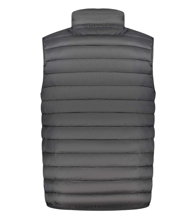Adorn the modern look with this black logo puffer vest from Cavalli Class crafted in polyester featuring sleeveless, stand collar, logo applique, zip closure, multiple pockets. Products purchased from Darveys are supported exclusively by the warranty/exchange policies of Darveys and its partner boutiques. Brand owners and their channel partners are not responsible for exchange/warranty services for items purchased through Darveys.