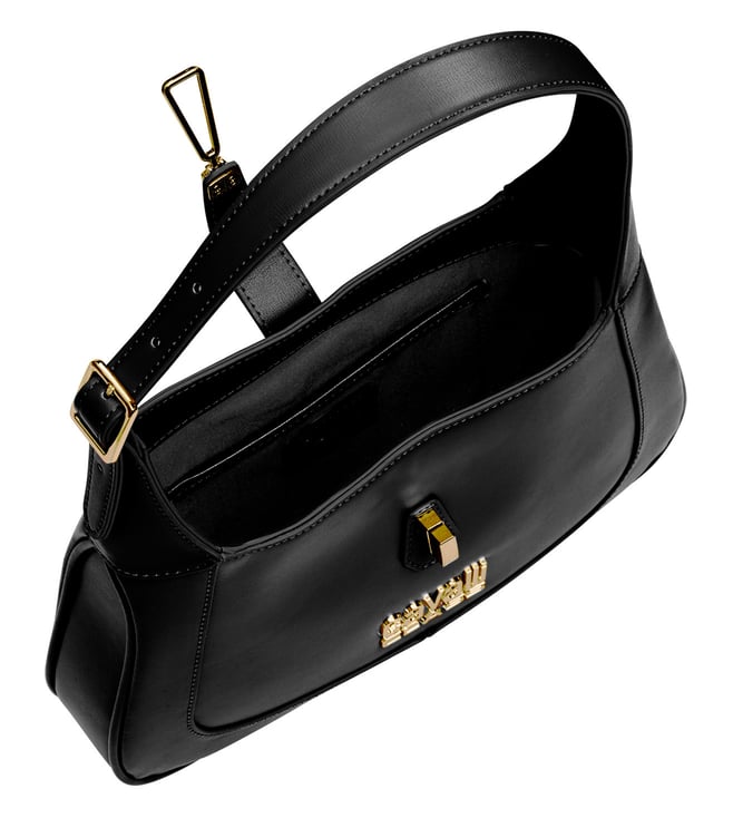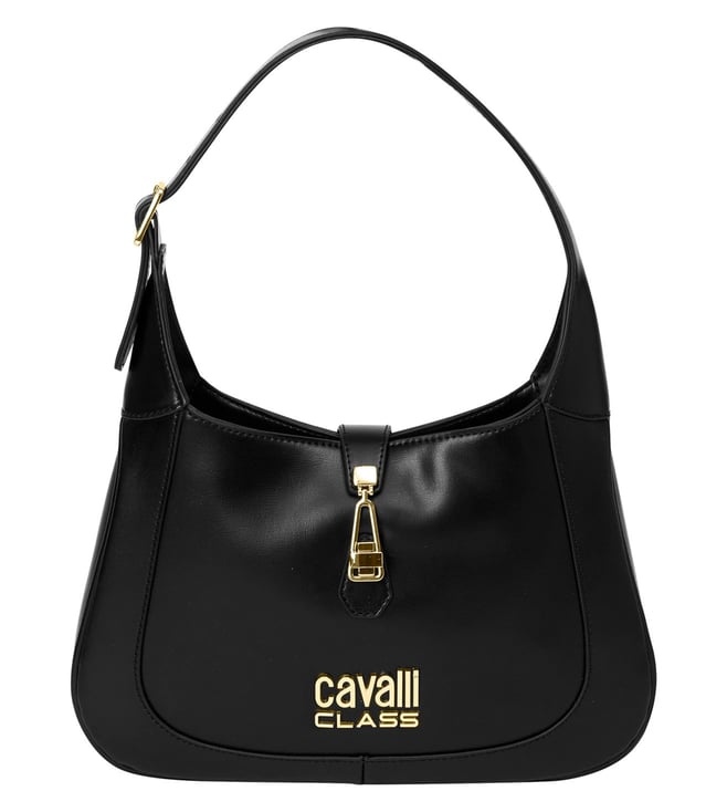Cavalli Class Black SIMETO Medium Leather Hobo Bag