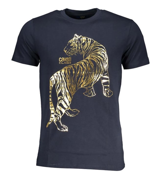 Follow the trend with this navy blue graphic logo print t-shirt from Cavalli Class crafted in cotton featuring short sleeves, crewneck, pullover style. Products purchased from Darveys are supported exclusively by the warranty/exchange policies of Darveys and its partner boutiques. Brand owners and their channel partners are not responsible for exchange/warranty services for items purchased through Darveys.