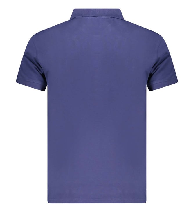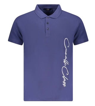Adorn the modern look with this Bluee printed logo polo from Cavalli Class crafted in cotton featuring polo collar, short sleeves, button closure, logo detailed.