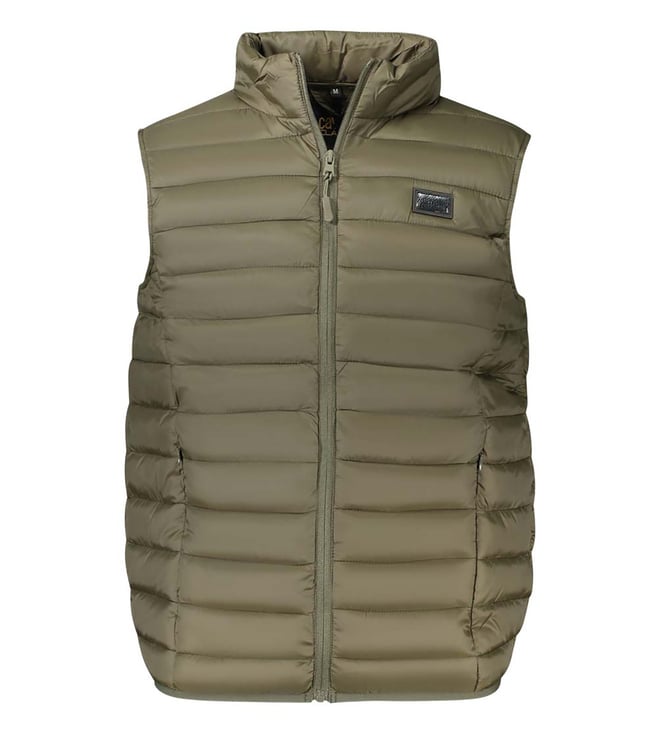 Adorn the modern look with this olive logo patch puffer vest from Cavalli Class crafted in polyester featuring sleeveless, stand collar, logo applique, zip closure, multiple pockets. Products purchased from Darveys are supported exclusively by the warranty/exchange policies of Darveys and its partner boutiques. Brand owners and their channel partners are not responsible for exchange/warranty services for items purchased through Darveys.