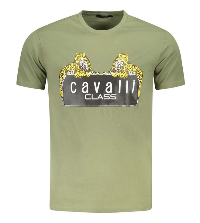 Cavalli Class Verde Cotton Graphic Regular Fit T-Shirt
