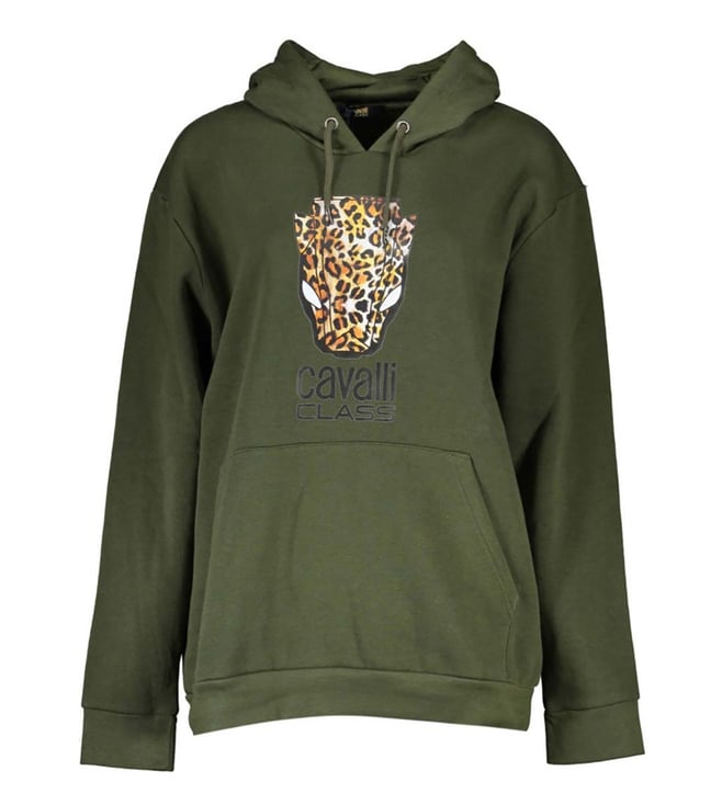 Cavalli Class Verde Printed Regular Fit Hoodies