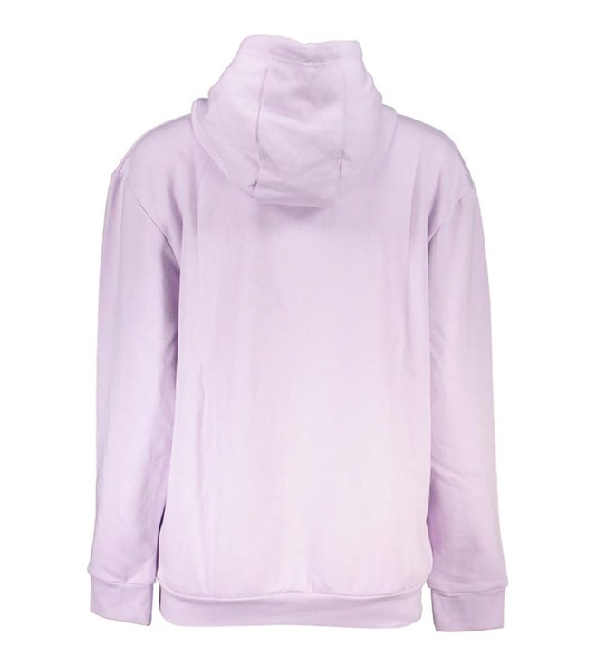 Amp up your wardrobe with this light purple print logo hoodie from Cavalli Class crafted in polyester/cotton featuring attached drawstring hood, long sleeves, pockets and pullover style.