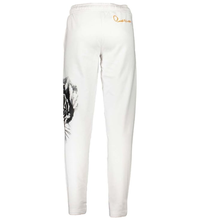 Follow the trend with this white logo print joggers from Cavalli Class crafted in cotton/polyester featuring elastic waistband, pockets, pull on style.
