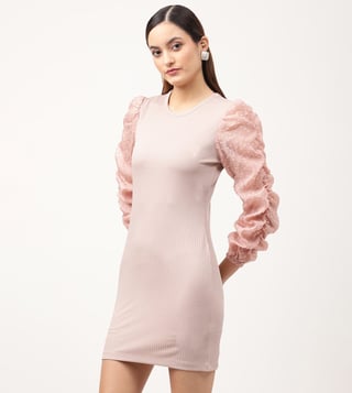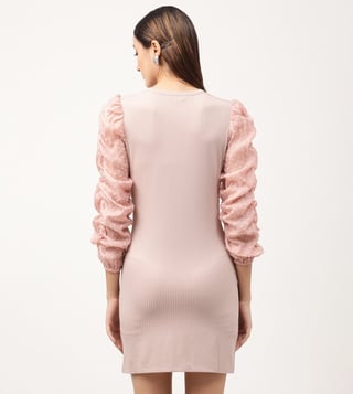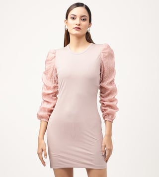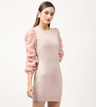 A vibrant pink bodycon Bodycon Dresswith a playful self-design pattern, featuring 3/4 sleeves, a round neck, and a flattering regular fit. Crafted from smooth nylon, this pull-on Bodycon Dressis both comfortable and chic.