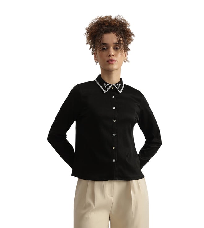 Slim Straight Black Mid Rise Embellished Jeans