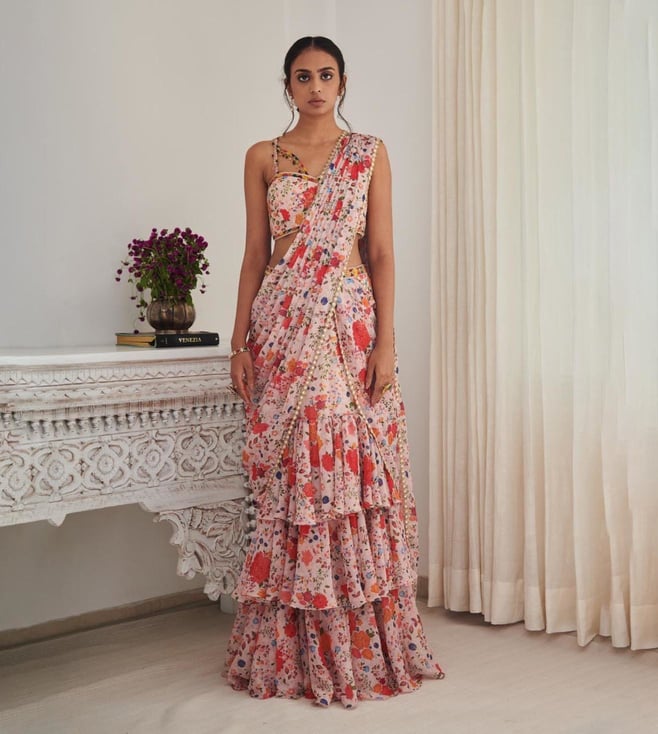 Pink Embroidered Ensemble Draped Saree