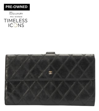 This Chanel wallet is conveniently designed for everyday use. The wallet is crafted from quilted leather and has a leather and fabric interior that comes with multiple card slots, open compartments and a flap pocket for you to neatly arrange your necessities. This stylish piece is complete with the famous CC on the front. In good condition with scratches on the surface and minor discoloration on the hardware, otherwise it has been well-maintained and remains both stylish and functional.