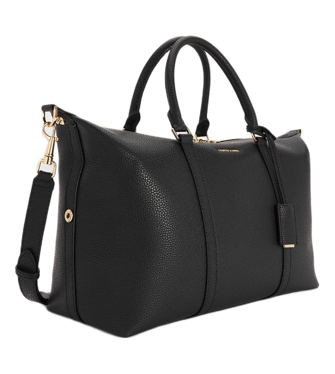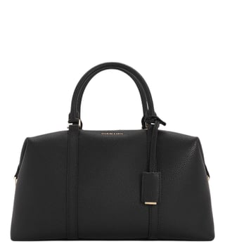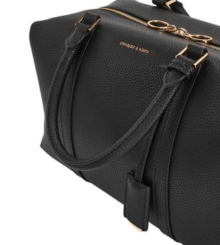 CHARLES & KEITH Black Chance Textured Extra Large Leather Bowling Bag