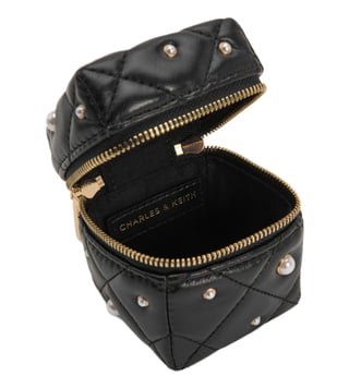 CHARLES & KEITH Black Micro Janie Embellished Extra Small Boxy Pouch