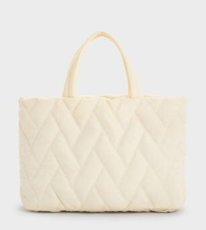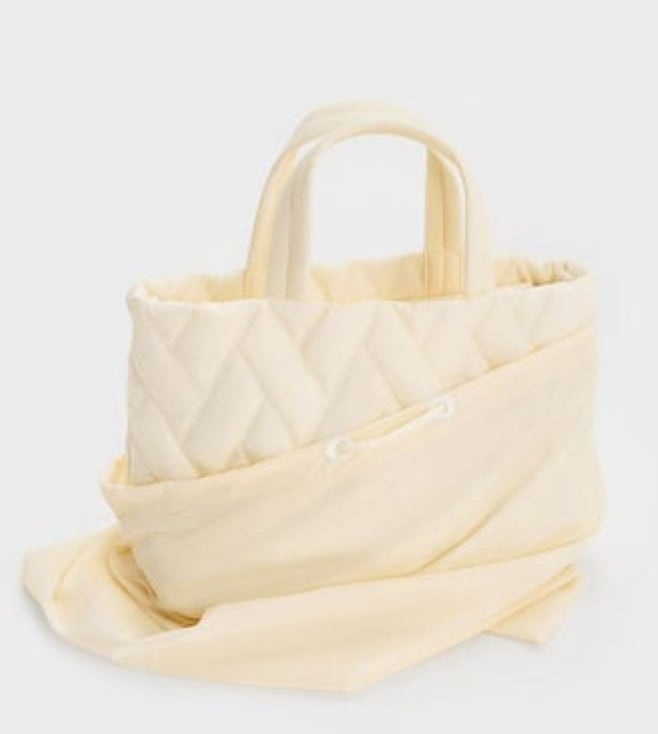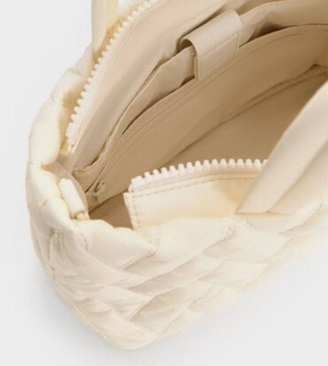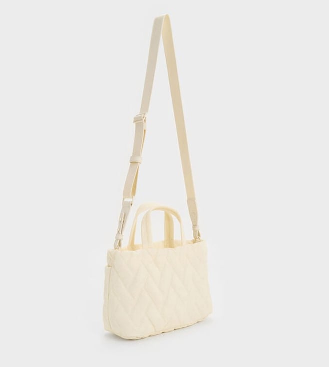 CHARLES & KEITH Cream TRAVEL LITE Chevron Quilted Medium Tote