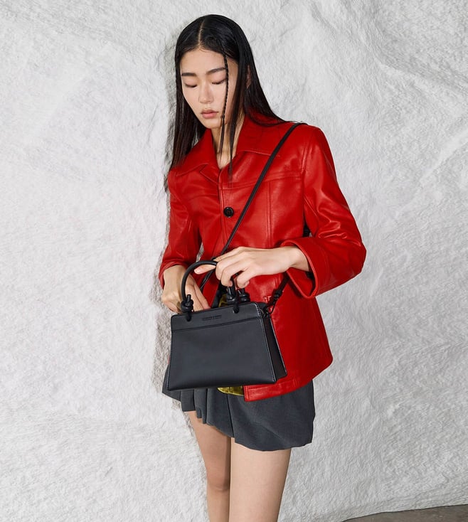 CHARLES & KEITH Jet Black Sabine Knotted-Handle Trapeze Tote Bag